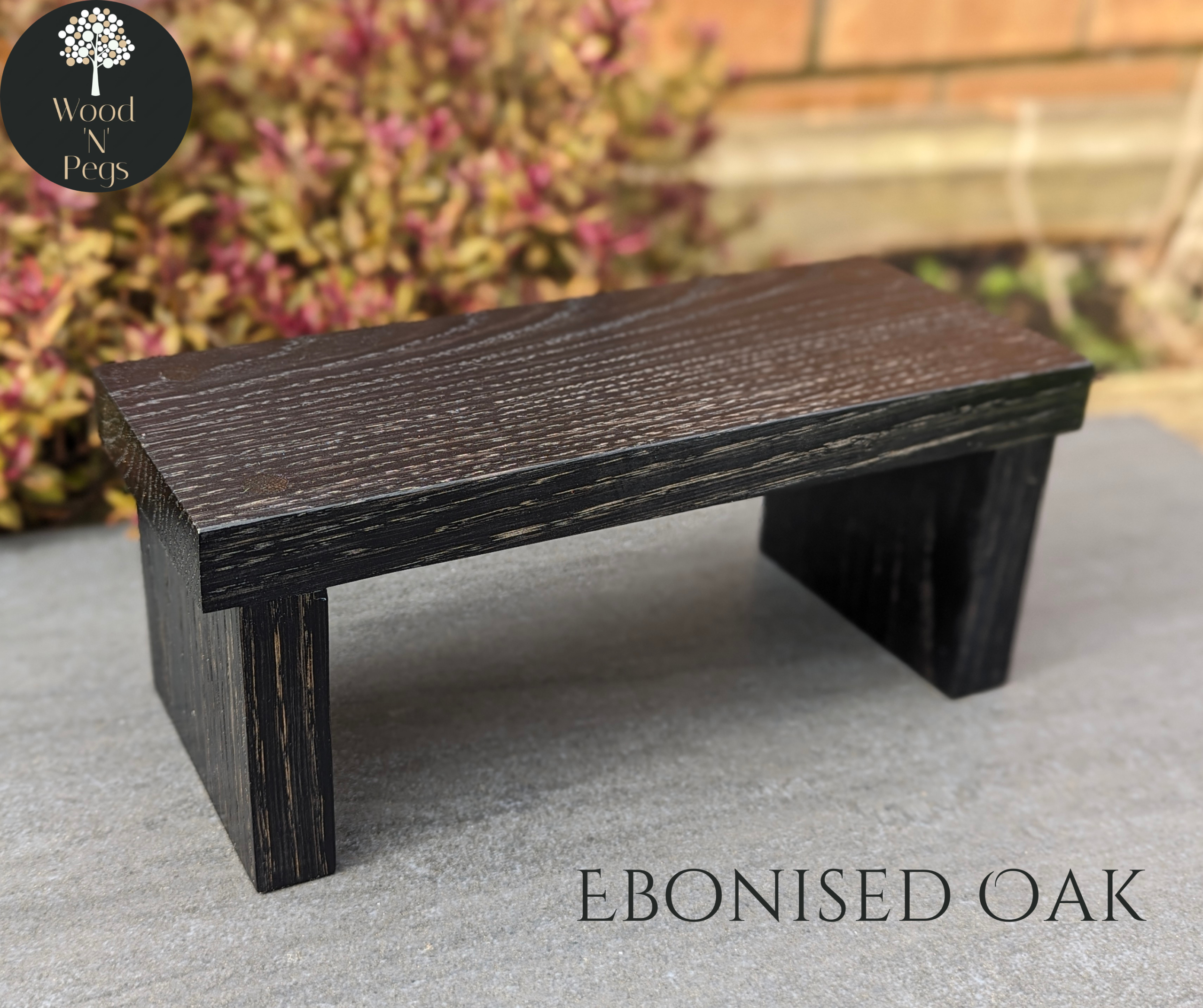 Handmade from solid Oak hardwood and Ebonised to turn the Oak a rich black, our display shelf/stands will last years and are perfect for the bathroom as a stand for bottles and plants, the kitchen countertop as a shelf, windowsills or your dressing table for perfume and jewellery. We believe they will match with almost any décor.