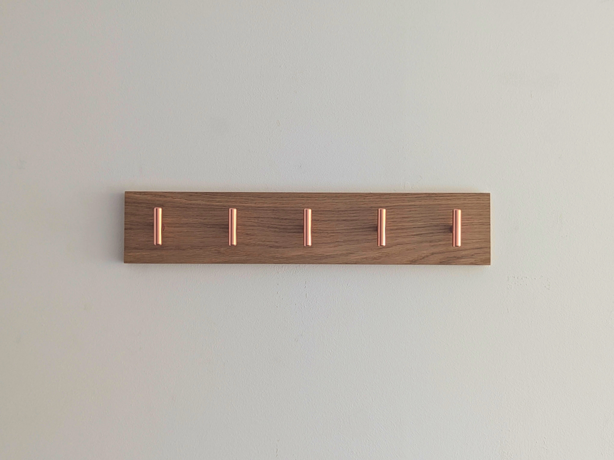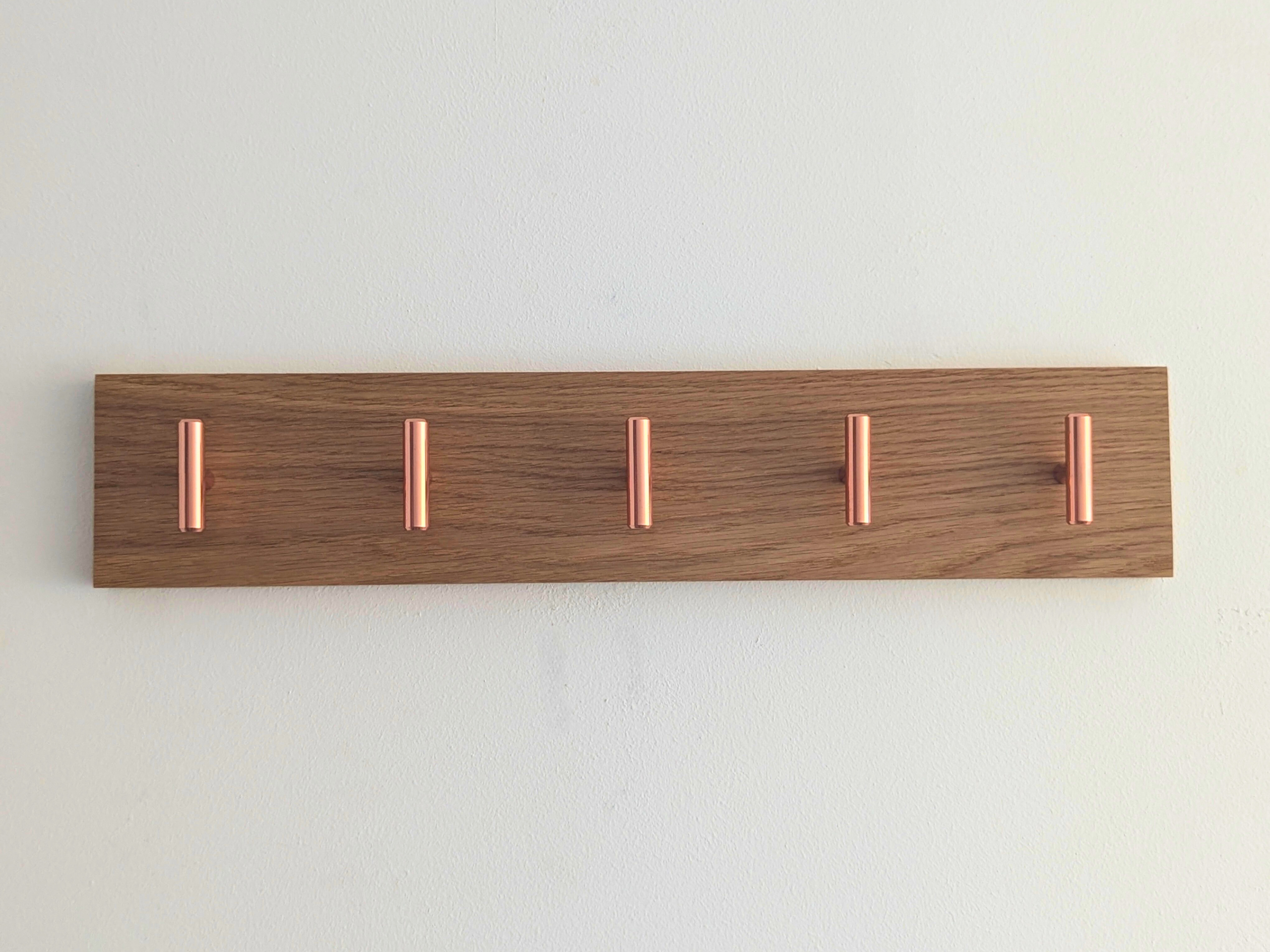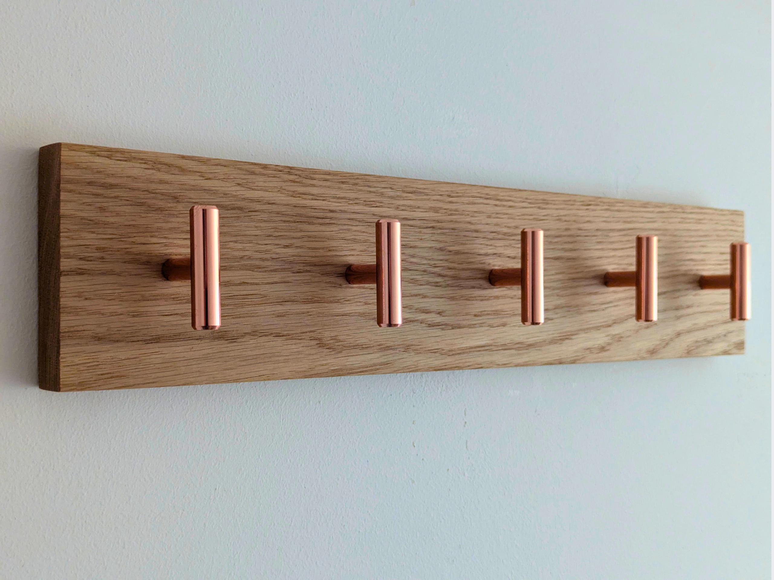 Each coat rack is customisable by length and number of hooks and with Black, Copper, Nickel, Chrome, Brushed Pewter and Rubbed Bronze hook types, there’s an option for everyone. Lovingly made to order in Yorkshire from solid Oak, our coat racks are supplied complete with keyhole fixings on the rear for flush wall mounting and provide a minimalist and modern look for entranceways, bedrooms or bathrooms.
