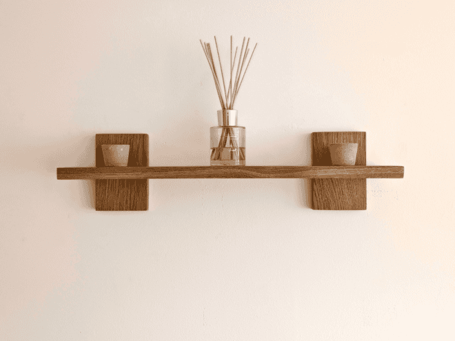 Our Scandi inspired modern Oak shelves are made from the highest quality Solid Oak and come in a range of depth and width options, if you can’t find the exact size you’re looking for please get in touch for a custom size. Bringing natural warmth and modern Scandi design to your home with our handcrafted solid oak floating shelves. Inspired by Scandinavian interiors, these shelves blend simplicity and function, creating a calm and timeless look in any space. They’re ideal for the bathroom, bedroom, hallway, or living area and can used to display your favourite ceramics, plants, candles, a few books — effortlessly stylish and beautifully practical.