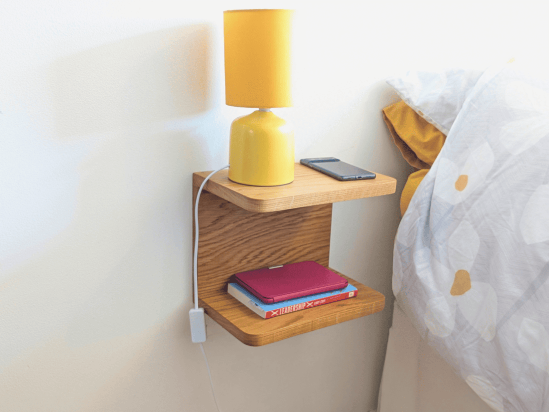 Perfect for holding your bedside essentials like a lamp, books, Kindle, and phone, these shelves bring a touch of natural beauty and warmth to any room. The durable solid oak is finished with a natural hard wax, providing a non-toxic, eco-friendly satin finish that protects the wood while highlighting its natural grain and character.