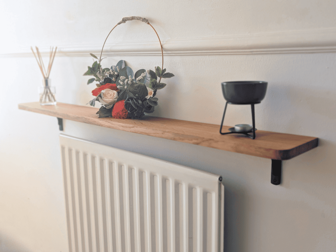 Despite being made from Kiln dried Oak with a low moisture content, all wooden products are prone to warping from temperature and humidity swings. To ensure this doesn’t result in warping of your shelf, lower the radiator temperature and slowly build this up over a couple of weeks to allow the shelf to acclimatise to the heat coming from the radiator.
