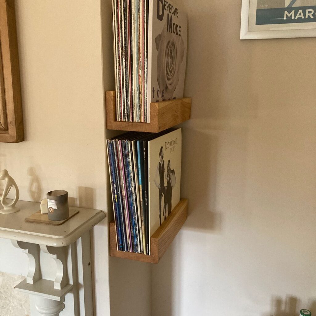 Our wall mounted Solid Oak Vinyl Shelf provides a stylish solution for storing and showcasing your favourite records.